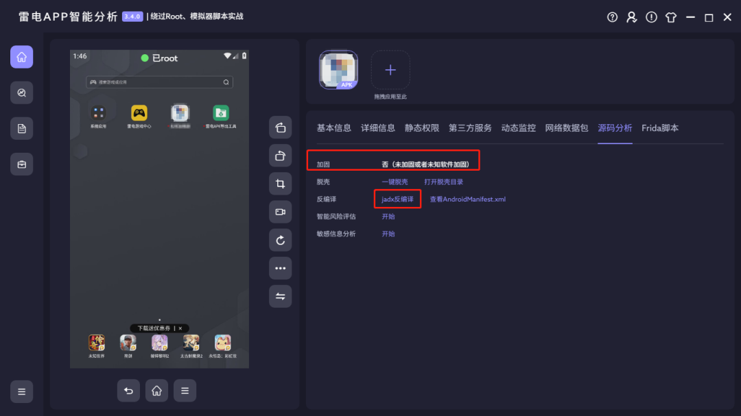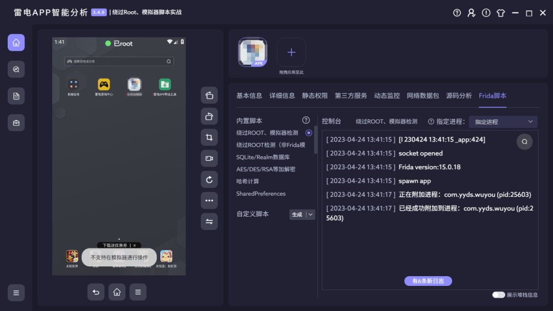 随着近几年网络犯罪打击力度不断加大,目前违法APP也愈发的隐蔽和难以分析。检测ROOT或模拟器环境是这类APP常见的反分析手段之一,雷电APP智能分析中也内置了绕过ROOT、模拟器检测功能。