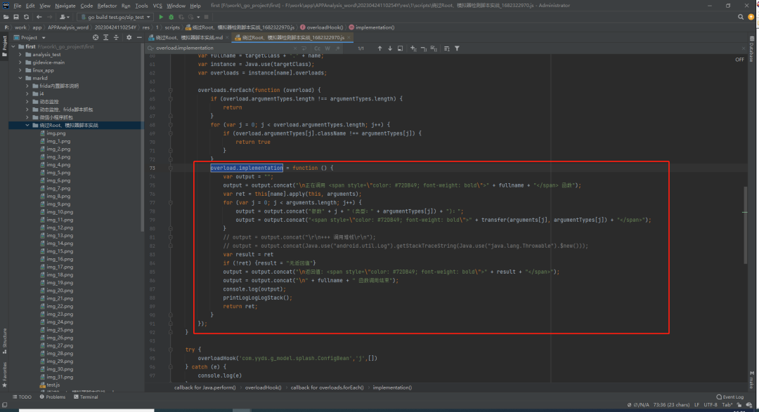 步骤2 打开生成的脚本,搜索“overload.implementation”,定位到hook的函数体位置,function函数就是目标函数。