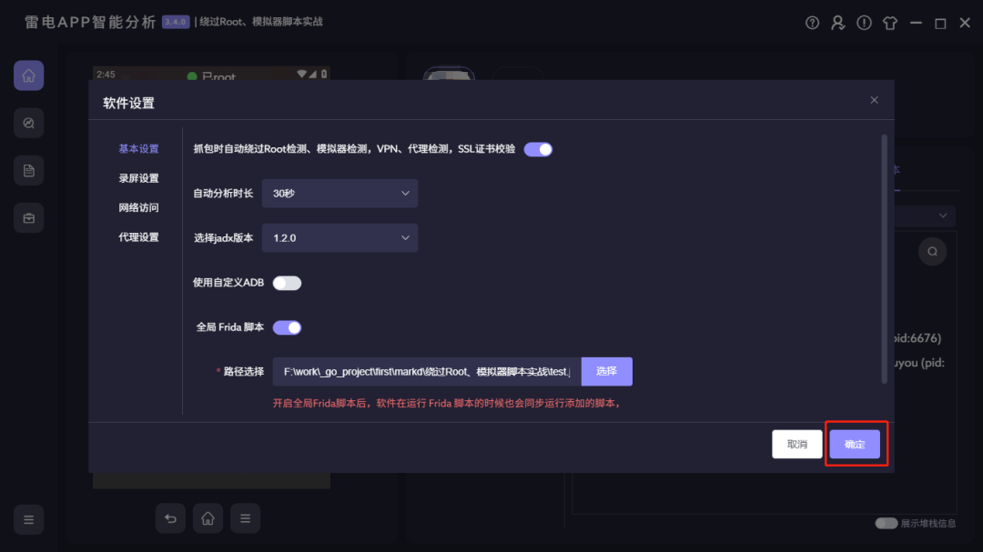 我们在分析APP时,经常需要重新启动APP,如何让我们写的脚本每次都能自动运行。我们可以通过全局脚本的设置,将脚本作为全局脚本自动执行。