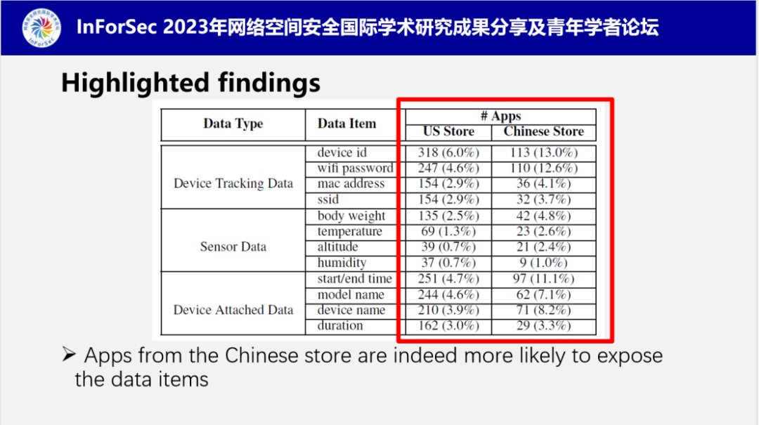 特别地,南老师还发现来自中国应用市场的(物联网设备)APP更容易或者说更激进的收集和使用设备数据。
