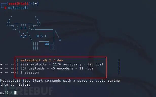 运行 msfconsole 即可打开msf命令控制接口