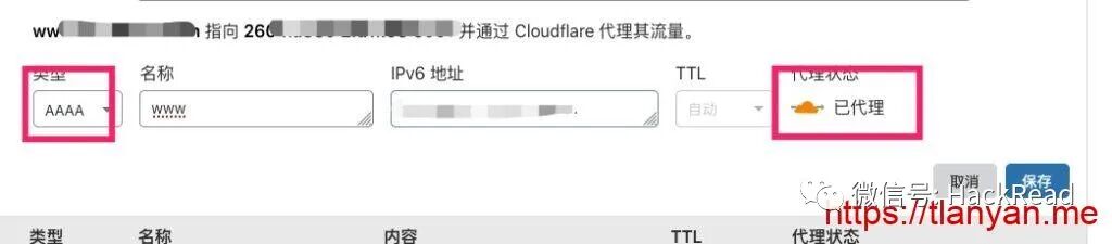 3. 找一家支持只有IPv6的CDN,例如 Cloudflare,设置IPv6解析: