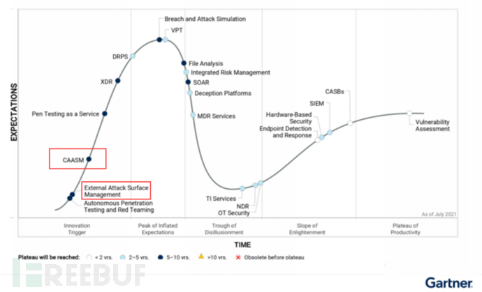 “攻击面管理”概念最早被提出是在2018年,但彼时该技术并没有得到广泛认可和共鸣。直到2021年,Gartner 首次在《Hyper Cycle for Security Operations,2021》报告中正式将“攻击面管理”定义为新兴安全技术。