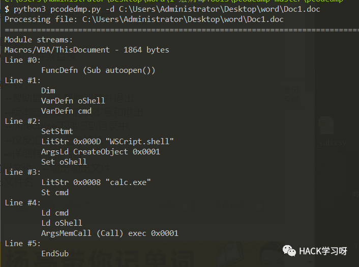 python3 pcodedmp.py -d C:\Users\Administrator\Desktop\word\Doc1.dochttps://github.com/fboldewin/reconstructer.orgofficemalscanner是MS Office的取证工具扫描恶意的痕迹,就像shellcode的启发式,PE文件或嵌入的OLE流。它支持拆卸和hexview以及一个简单的蛮力的方式检测加密的文件。除此之外,正在扫描一个Office文件以获取VB宏代码 。是一个非常古老的提取工具了