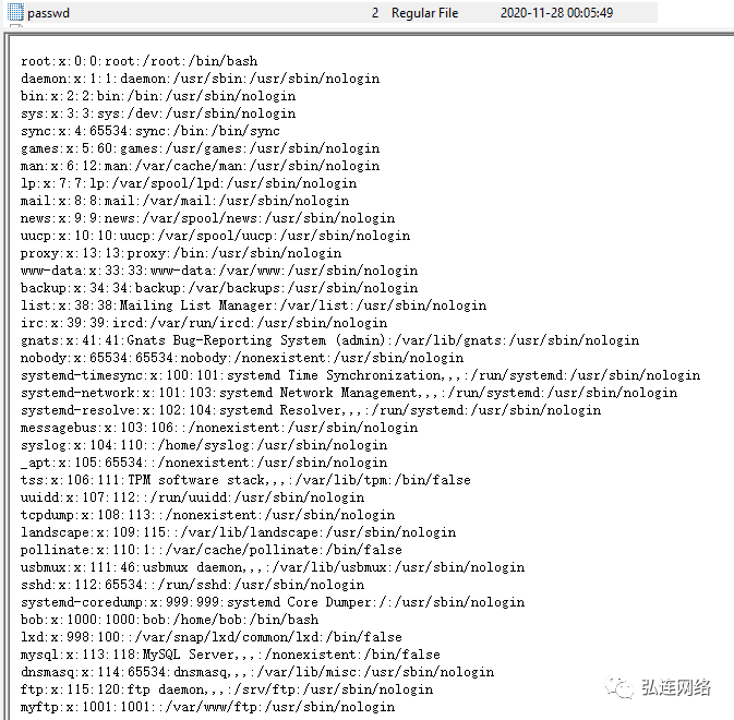 4 `/etc/passwd`查看用户列表:根据用户名猜测服务![]()