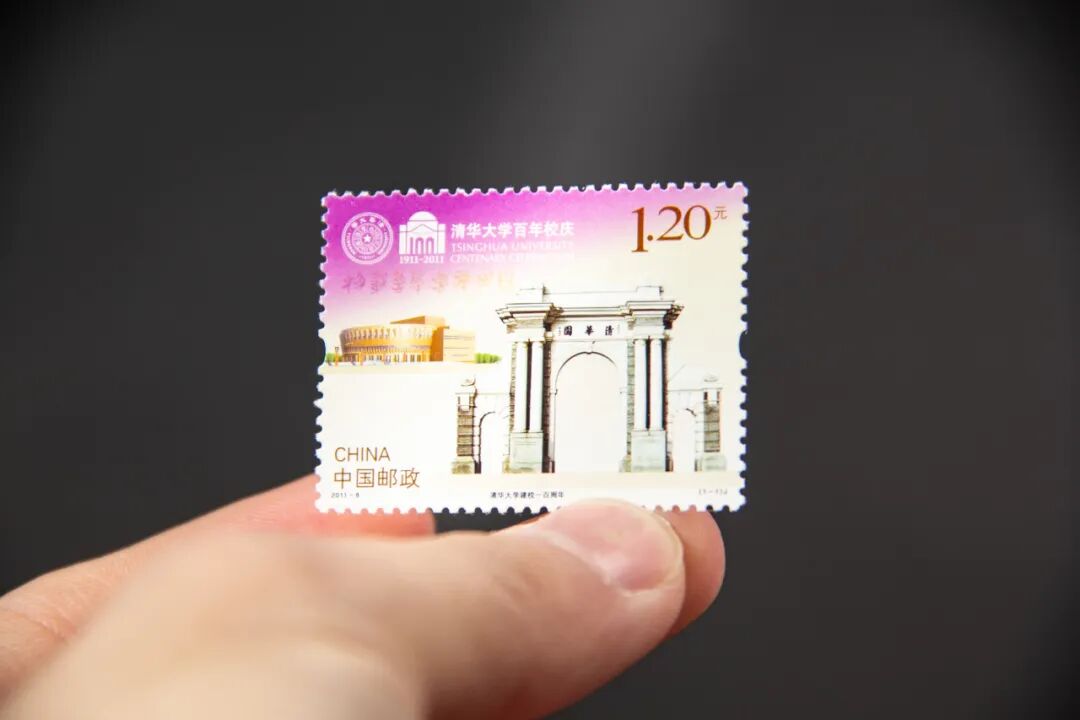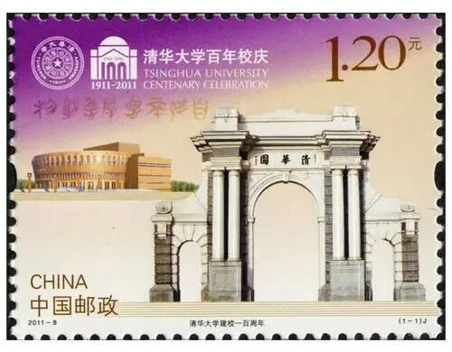 《清华大学建校一百周年》纪念邮票一套一枚,图案由清华大学美术学院何洁教授设计。