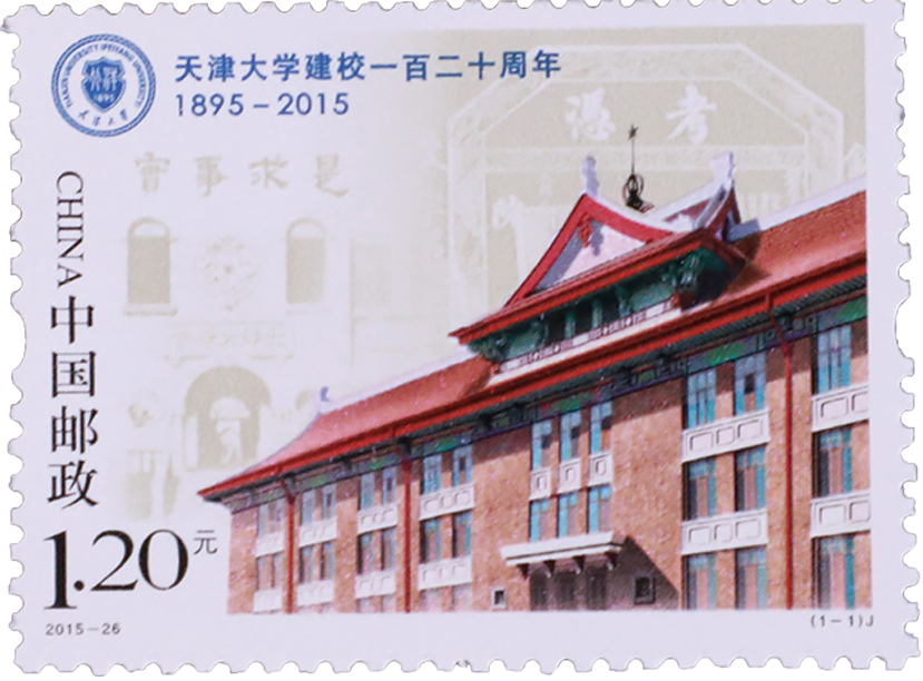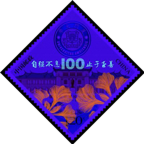 背景表现了校徽、校训及百年校庆标识等元素,画面层次丰富、主题突出。该套邮票由徐喆设计和雕刻,北京邮票厂有限公司胶雕套印工艺印制。