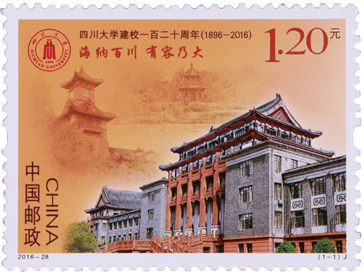 邮票采用钢笔淡彩的设计形式,主图采用四川大学行政楼为主体,配以钟楼及荷花池两个元素
