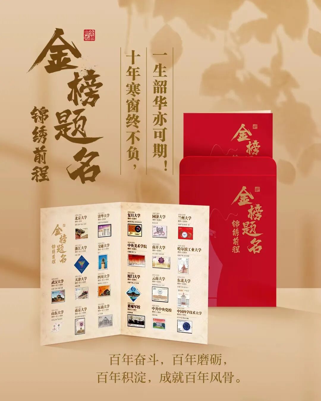 珍藏册将历来发行的所有百年名校珍邮一次集齐,方寸之间领略名校风采。