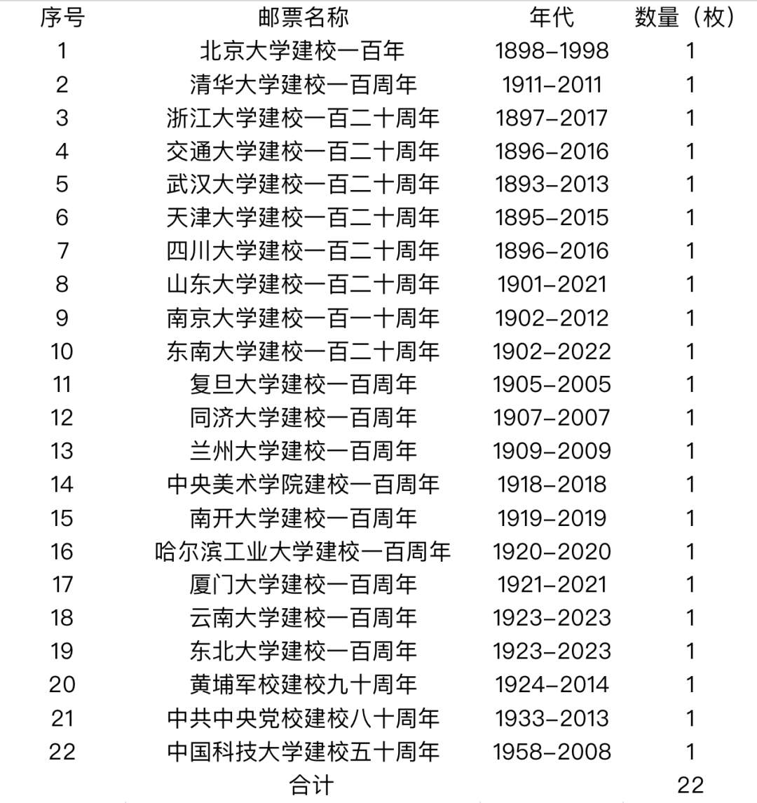 并且一般只有在校庆期间才会发行,也就是说一个高校也可能只发过一张邮票。