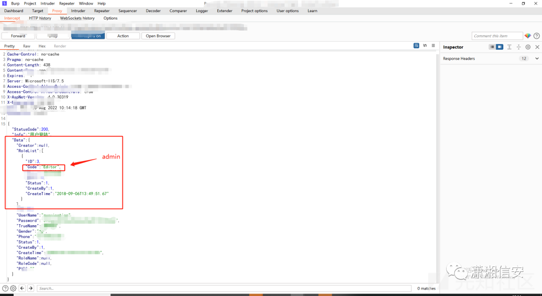 我们可以看见这个登录时并没有存在一个验证码,就会存在一个爆破问题,那么一般爆破的用户名又会存在那些呢?这里也可以去查找对应系统的的操作手册,收集管理账号,增加爆破机率我们可以去扫描目录,可能一些被扫描出来的目录未做鉴权,可直接访问上面方法都无果后,我们接下来去看下JS文件,发现在index.js中存在一个/SystemMng/Index的url,我们尝试拼接访问到这里我们拿到了管理员的账号以及电话了,也可以直接重置他们密码了(拿正确的账号再去尝试爆破)可以看见password被加密了,发现为md5,我们利用burp自带的转码爆破即可爆破成功,账号比较复杂,在没前面的操作下拿不到用户名随意输入登录的账号密码登录抓包,修改他的鉴权数据后现在已经拿到了普通用户的账号密码了,那我们后面应该去尝试一个越权,垂直越权或者平行越权拿爆破的号进行登录抓包处理,这个地方师傅们在挖掘的时候可以多看几遍数据包以及返回包开始在构造时以为是校验ID,后面多测试几轮下来,发现只会去识别code参数每日坚持学习与分享,觉得文章对你有帮助可在底部给点个“再看”