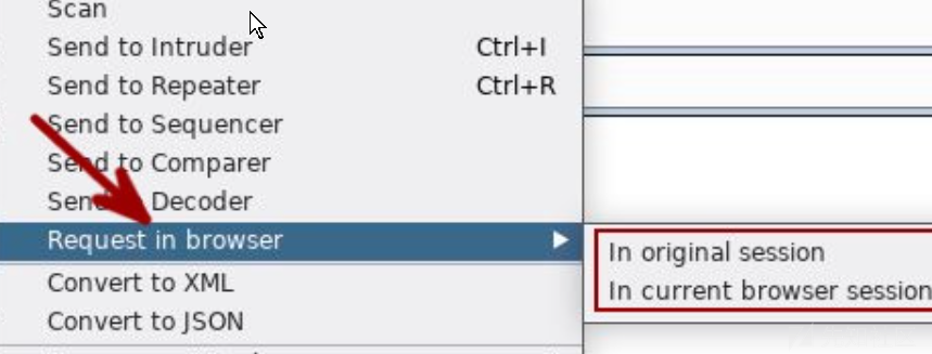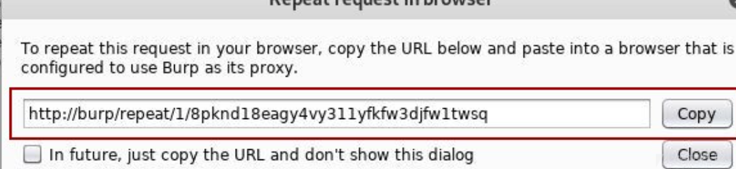 如果测试特定请求在由用户代理呈现时的行为方式,比如xss,Burp可以重复请求并在浏览器中查看它。右键单击消息输出的请求后选择"在浏览器中请求"。
