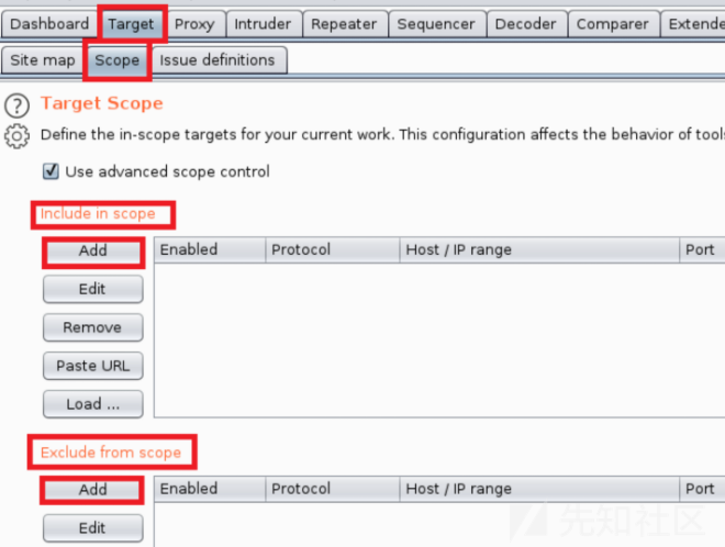 设置了scope后可以在HTTP History中进行过滤,选择"Show only in-scope items"