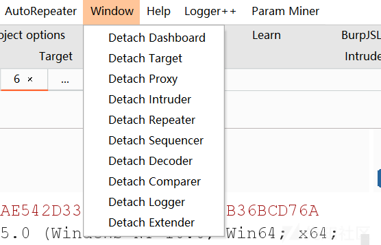 还有的就是模块选项卡的切换,有时候插件很多了,找repeater和proxy眼睛看不过来,可以直接windows选项卡切换: