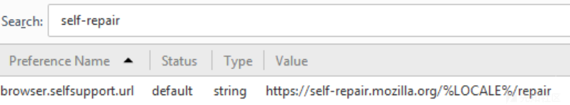 但是还是会有一些域名的请求,转到about:config,再次搜索self-repair.mozilla.org