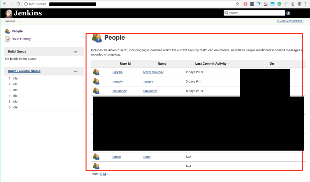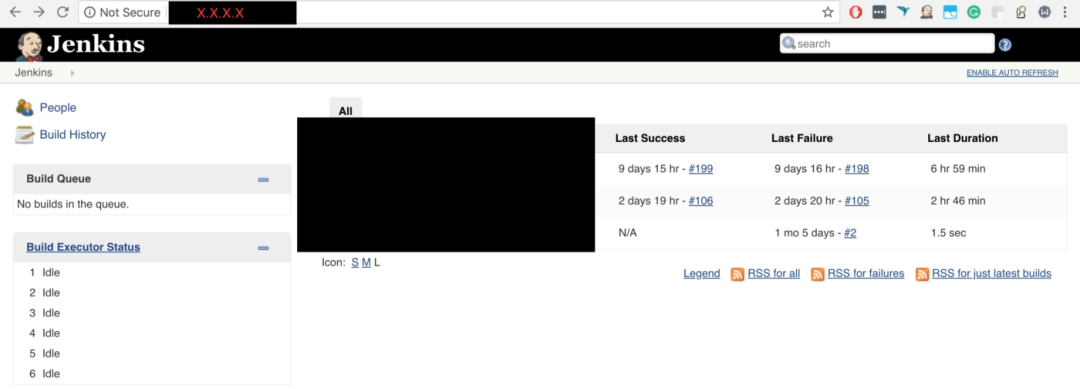 可以看出,这里的服务器名称是Jetty:8080,这让我瞥见它可能正在运行Jenkins(通常是因为它运行在Jetty的标准端口80/443/8080/8443上)-什么是Jenkins-它用作CI连续集成工具,用于自动化企业中项目/应用程序的部署。我进一步检查了IP(XXXX)以获得更多详细信息,确实是詹金斯在那儿运行- 我打开了它,并且可以公开访问它,最糟糕的是它没有设置任何身份验证。 如您所见,我能够访问Jenkins仪表板,而访问Jenkins仪表板本身是一个安全