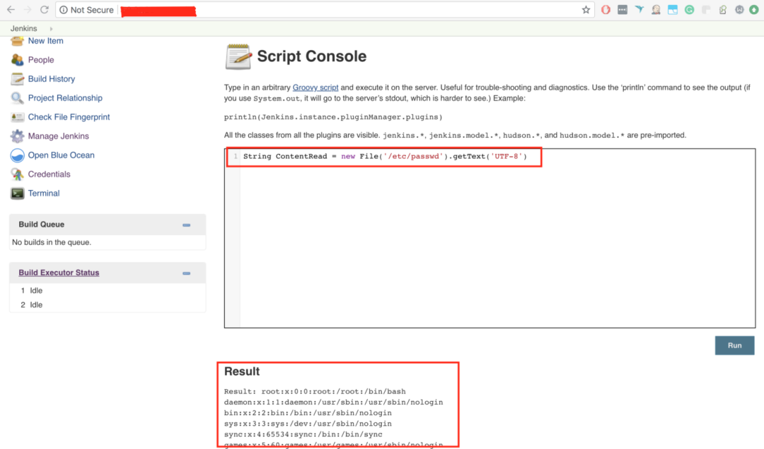 / credentials / -它允许访问查看凭据ID,名称。/ configure / —这是Jenkins的配置管理仪表板。/ configureSecurity / —安全性设置的配置管理。/ script / —运行命令的脚本控制台。br/ script /可访问,导致远程执行代码(本地服务器映像)