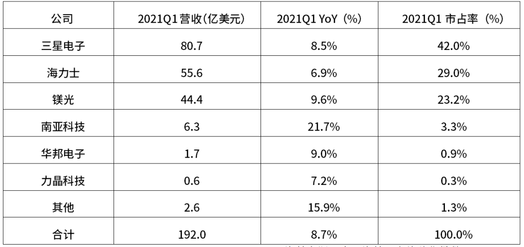 国内企业也有相关布局,以江波龙为例,在2021年就开始投入研发相关产品,预计在2022年下半年推出满足AEC-Q100 Grade 2级别的FORESEE UFS 2.2产品,首次推出的产品容量为64GB-128GB(Operation Temp:-40~105度,Reliability:10ppm以下,Longevity:3年),支持LDPC算法、Write Booster、HPB、紧急断电保护、FFU升级、FBA数据加速等功能。未来,FORESEE 车规级UFS将重点在车载驾驶域和驾舱域进行产品推广,以满足客户对大容量和高数据传输速度的要求。动态随机存储器(DRAM)作为存储单元,由一个MOSFET和一个电容组成,DRAM存储芯片上布满存储电路,存储电路主要由一个个存储单元组成存储阵列,阵列密度决定存储密度,DDR是由固态技术协会( JEDEC )制定的DRAM内存标准,目前市场上主要产品为DDR4。由于每一代DDR都需要平台支持,短期难以替换之前的DDR产品。市场格局上,主要为国外及中国台湾企业,国产企业占比相对较低。DRAM芯片市场格局
