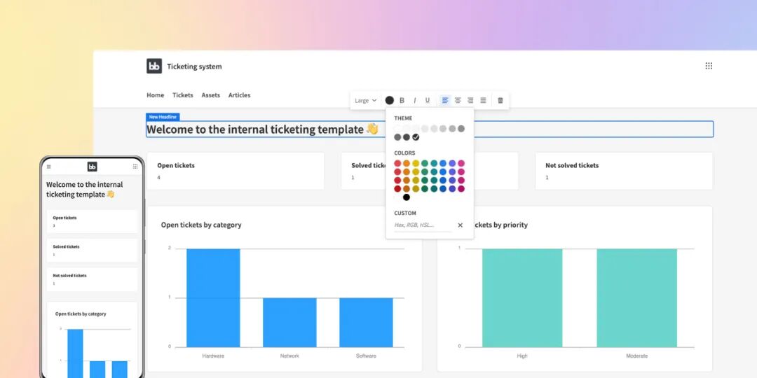 与其他平台不同,您可以使用 Budibase 构建和发布单页应用程序。Budibase 应用程序具有内置的性能,并且可以响应式设计,为您的用户提供出色的体验。