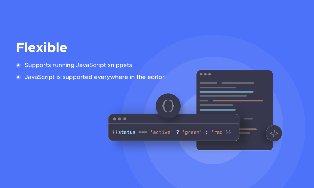 低代码:几乎可以在构建器的任何地方编写 JS 代码。例如,可以将文本的颜色属性设置为status === 'success' ? 'green' : 'red'