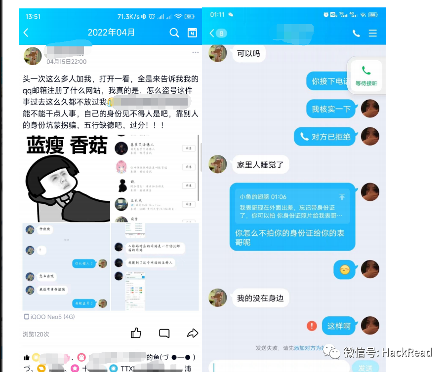 翻阅个人空间可以看到这个人并不知情,也是受害者,自己身份信息被盗用,确实挺惨的
