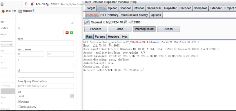 app="Solr" && port="8983"找到了目标ip进入主界面