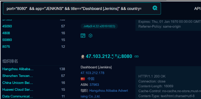 port="8080" && app="JENKINS" && title=="Dashboard [Jenkins]"在默认情况下Jenkins面板中用户可以选择执行脚本界面来操作一些系统层命令。
