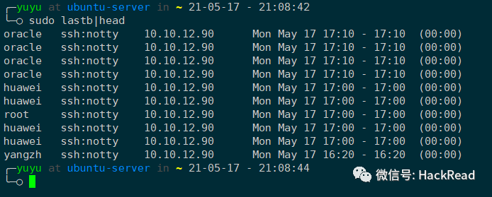 5月17日下午,发现有人爆破我服务器的口令。