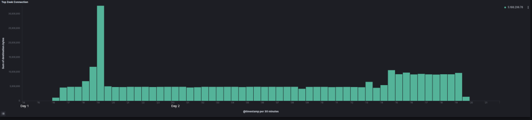 入侵开始五小时后,攻击者暂时休息,除了跳板机外其他主机上的FlawedGrace和Cobalt Strike会话都进入休眠状态。十七小时后,攻击者返回网络并开始枚举网络中的共享资源,此时我们发现攻击者有一些窃取数据的行为。