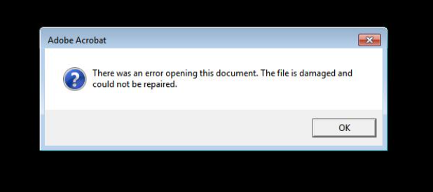 打开这个文件时还会提示文件已损坏,这让受害者更加真实地认为这个可执行文件是一个普通的PDF文档。