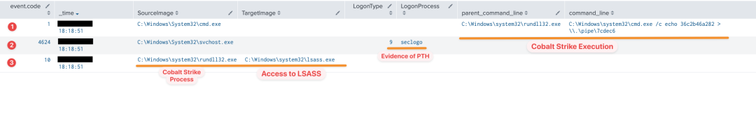 在整个入侵过程中观察到使用 postex_* 模式的标准 Cobalt Strike 命名管道。