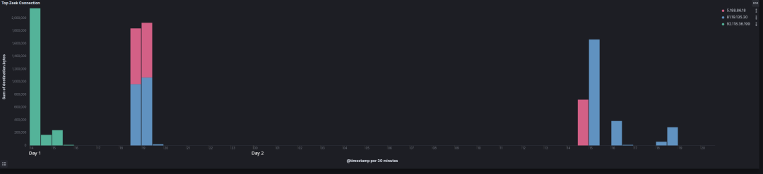 在入侵过程中,攻击者转向多个命令和控制地址,多个 C2 地址之间存在重叠时间。在入侵过程中,此活动发生了数次。