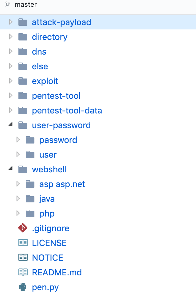 各种渗透测试常用的资源文件,包括各种爆破字典、exploit、webshell、攻击payload等。