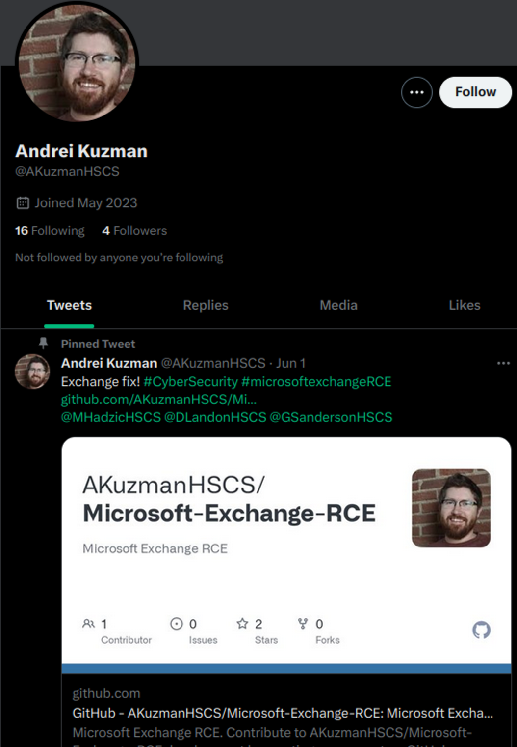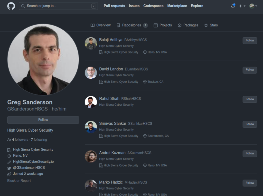 在个人资料页面,这些人自称是“High Sierra Cyber Security”网络安全公司的研究人员,为增加可信度,甚至还盗用了Rapid7等安全公司的真实安全研究人员的头像。他们在Twitter上宣传其看似正规的GitHub代码库,潜在攻击目标很可能是参与漏洞研究的网络安全研究人员及公司。
