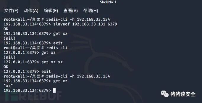 [email protected]:~/桌面# redis-cli -h 192.168.33.134192.168.33.134:6379> slaveof 192.168.33.131 6379OK192.168.33.134:6379> get xz(nil)192.168.33.134:6379> [email protected]:~/桌面# redis-cli127.0.0.1:6379> get xz(nil)127.0.0.1:6379> set xz xzOK127.0.0.1:6379> [email protected]:~/桌面# redis-cli -h 192.168.33.134192.168.33.134:6379> get xz"xz"192.168.33.134:6379>