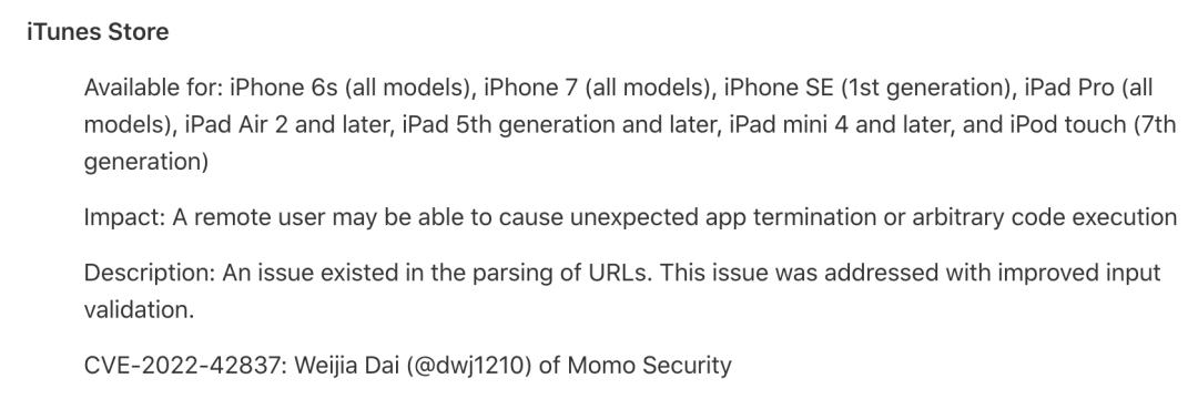 陌陌安全获Apple致谢:CVE-2022-42837 - iTunes Store 之殇
