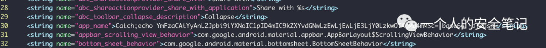 尝试寻找其他线索。在 Android 项目中的 res/values 中有一个 strings 的 xml 文件,官方推荐将项目中所有的字符串和字符串数组放到该文件中,方便维护和复用。从中找到一些服务固定 Token 字符串。