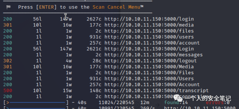$ feroxbuster -u http://10.10.11.150:5000 -w ./SecLists/Discovery/Web-Content/directory-list-2.3-medium.txt -H "Authorization: Bearer NjFiODZhZWFkOTg0ZTI0NTEwMzZlYjE2OmQ1ODg0NjhmZjhiYWU0NDYzNzlhNTdmYTJiNGU2M2EyMzY4MjI0MzM2YjU5NDljNQ==" -d 1开始对枚举的路径进行访问尝试,访问多个路径发现都没有返回预期的结果。开始去HTB论坛 - https://forum.hackthebox.com[6],里面的主题帖找线索。