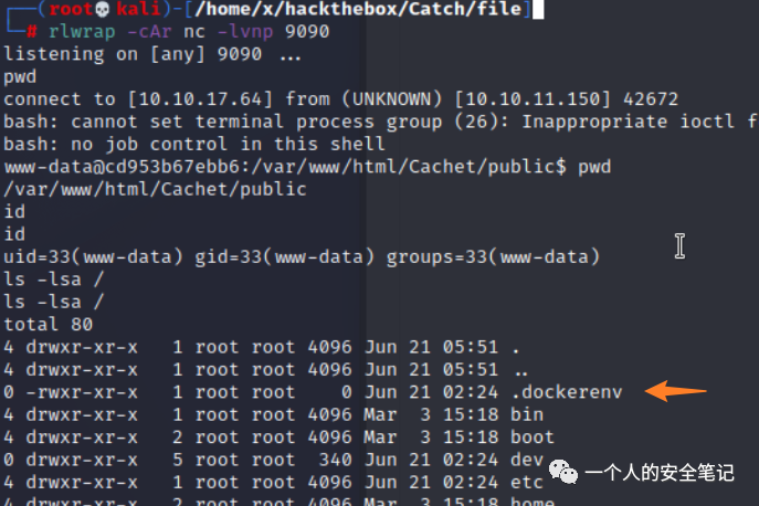 成功拿到立足点,但是发现存在 /.dockerenv 文件,说明后续可能还要进行容器逃逸。