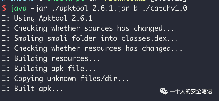 将 catchv1.0.apk 包下载在本地后,可以使用 apktool[3] 工具对 APK 文件进行解包。