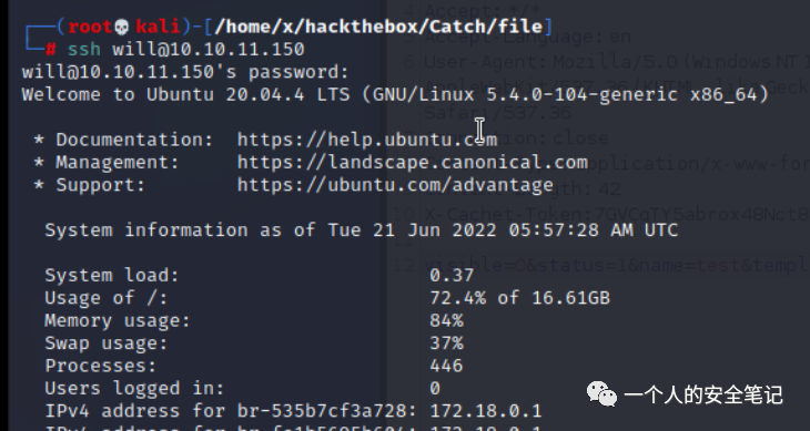 DB_DATABASE=cachet使用该口令进行 SSH 登录,成功进入目标服务器的物理机,完成横向移动。