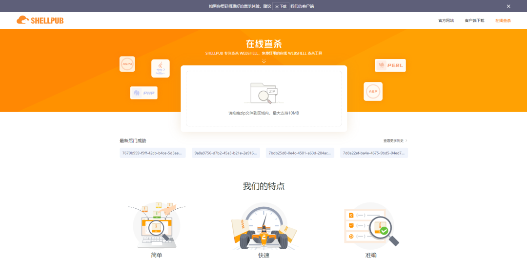 SHELLPUB专注查杀WEBSHELL,免费好用的在线WEBSHELL查杀工具,webshell木马查杀保护网站挂马,网页黑链webshell木马查杀工具,一款保护网站安全,操作简单网页安全工具。