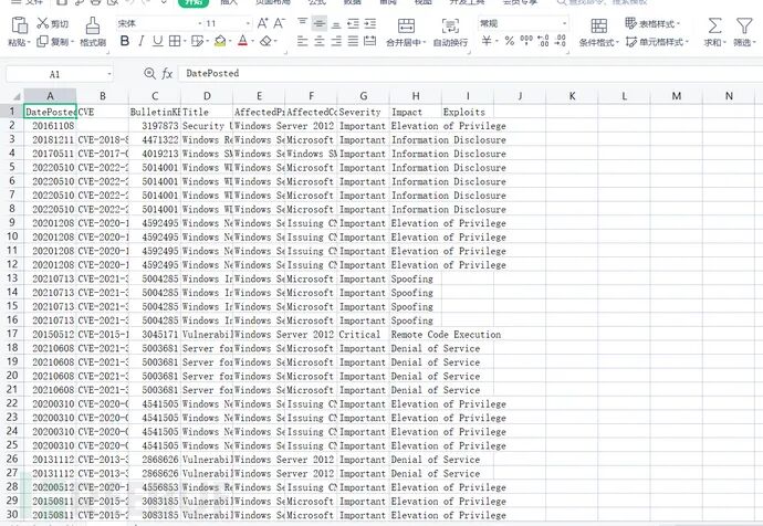 使用wesng进行补丁筛选(python wes.py .txt -o vuln.csv)