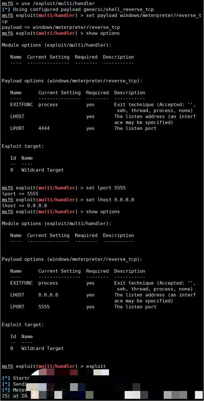 设置监听ip,全部监听(set lhost 0.0.0.0)
