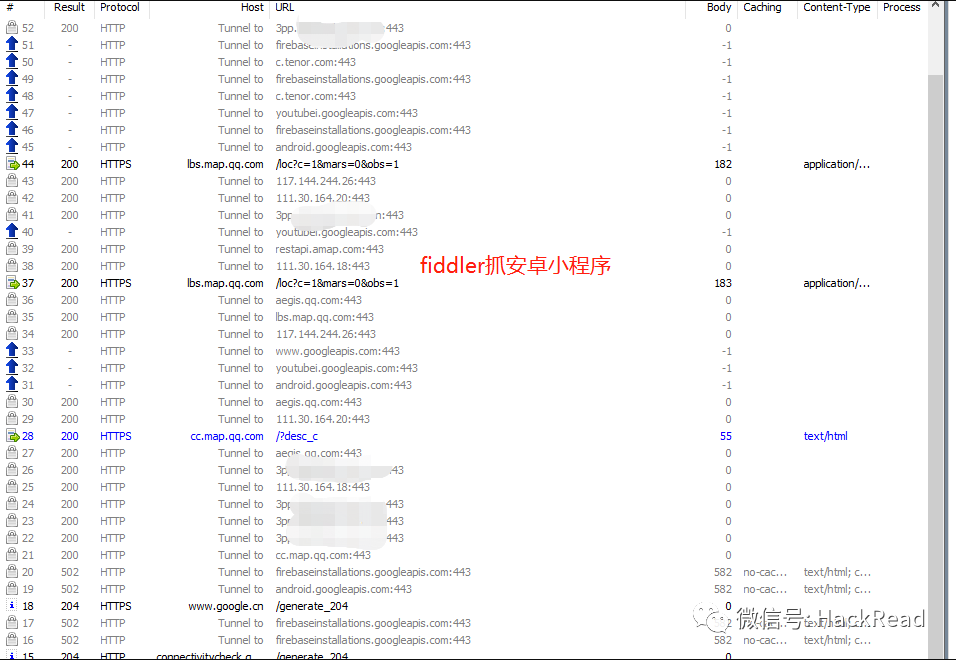 所以只好在将fiddler启动时设置为系统代理,然后选择微信小程序进程进行抓包。到这里,PC端的抓包就结束了。