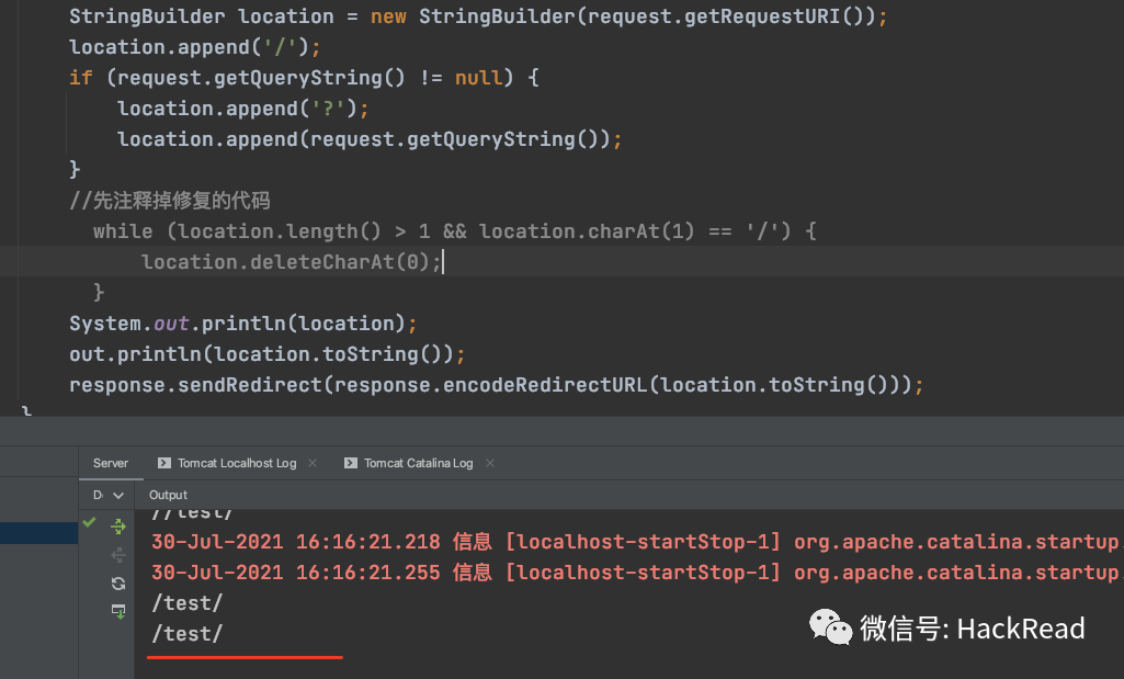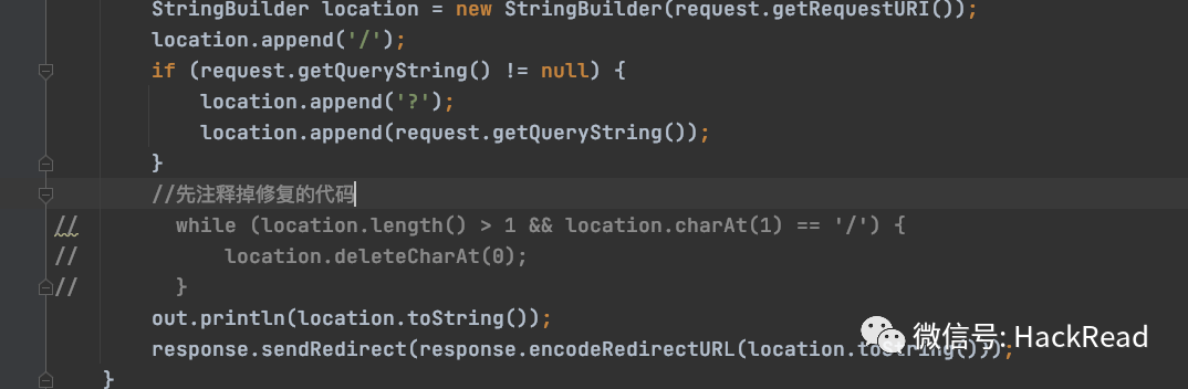 这里的代码没对//做处理,导致变量走sendRedirect的时候,直接url跳转了: