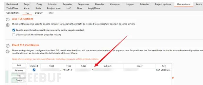 把新备份证书导入burp 就可以了,这个时候输入密码a就可以成功导入客户端证书了